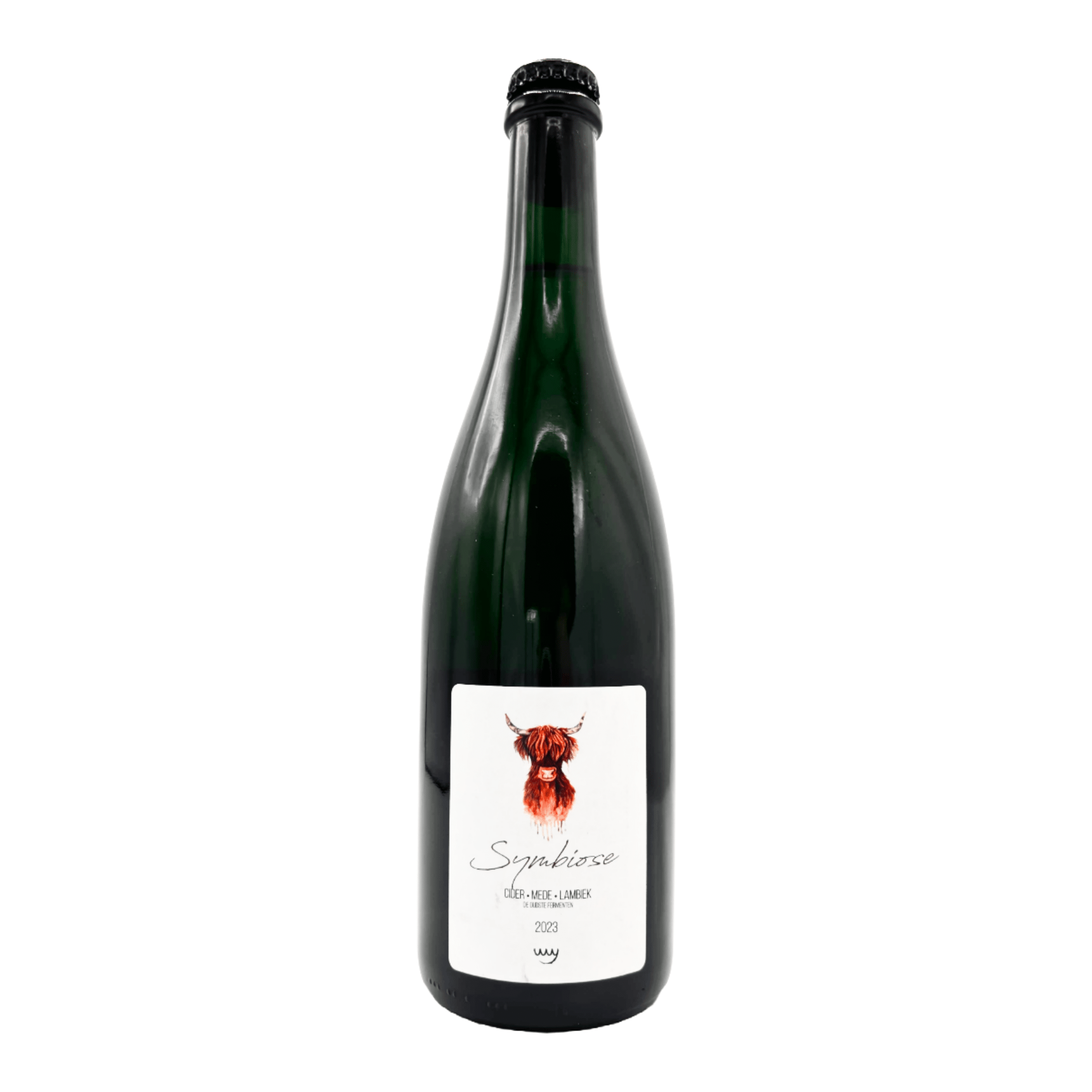 This Symbiose is a delicate assembly of cider, lambiek and mead. A wild yet gentle blend. Fermented, aged and bottled on the farm.