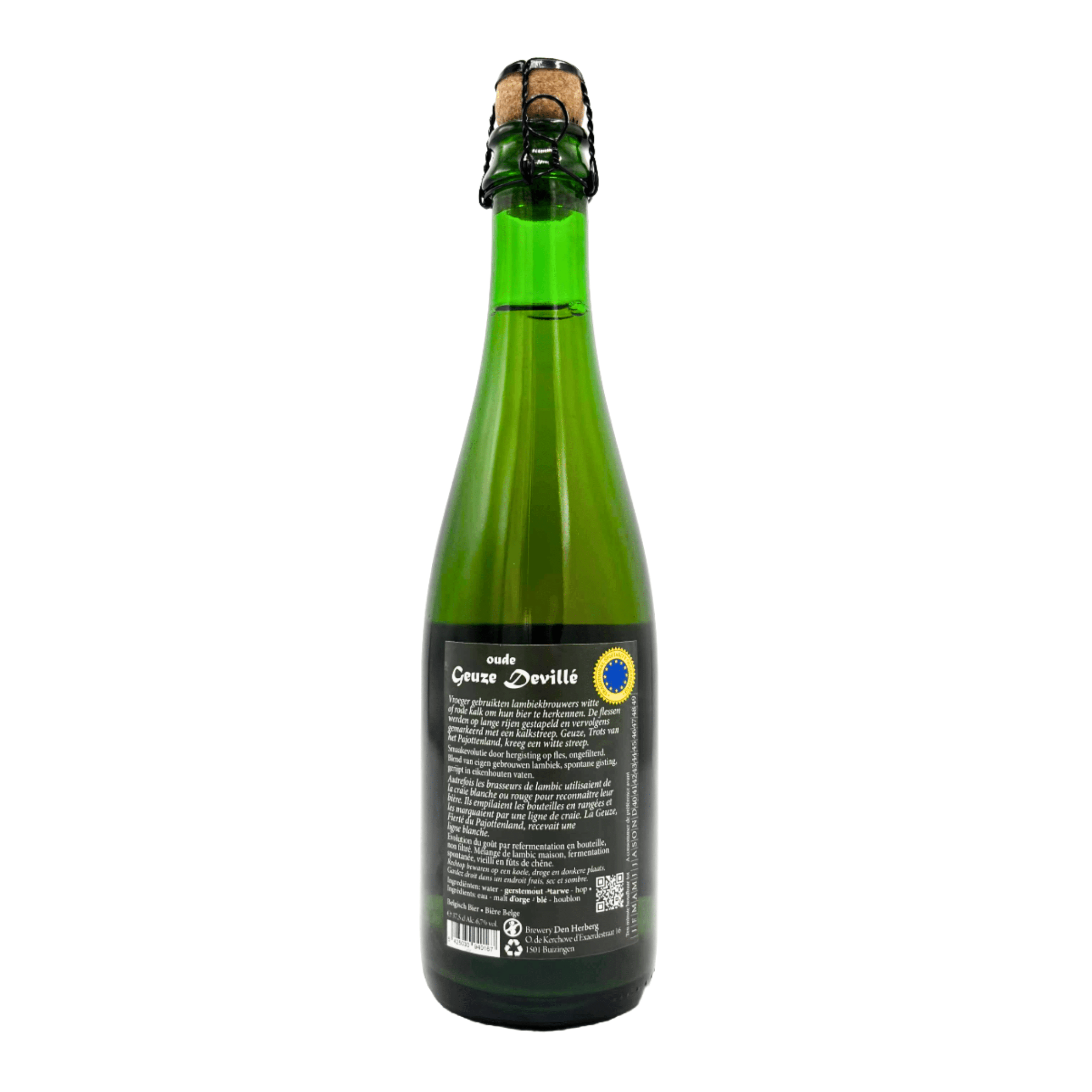 A traditional Geuze from Den Herberg — unfiltered, spontaneously fermented, and aged in oak barrels. Refermented in the bottle for natural complexity and flavour evolution.
