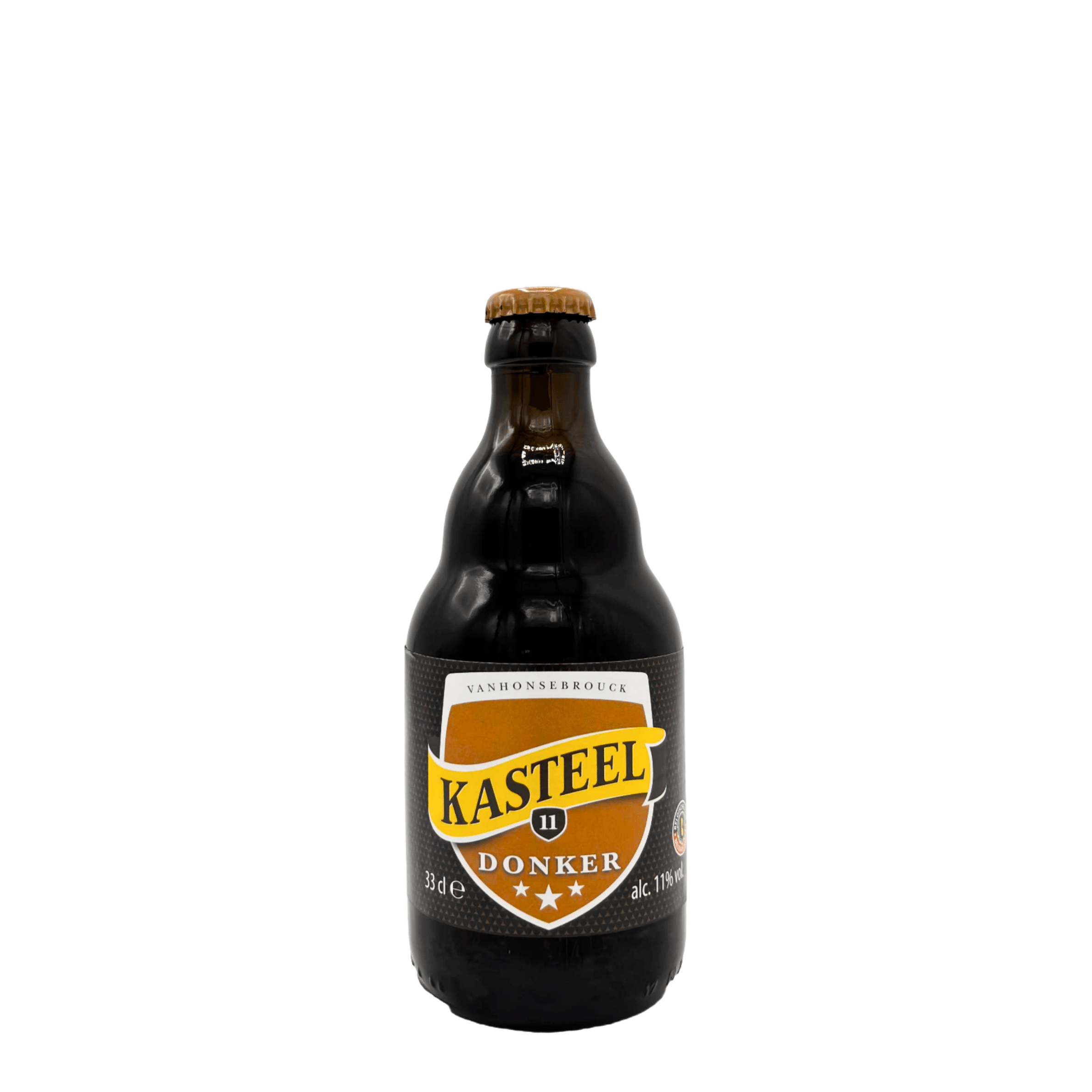 Kasteel Donker is a member of the Belgian quadrupel family. These are strong dark brown beers where the roasted malt predominates. The very first beer of the Kasteel range is a full-mouthed beer with hints of caramel, coffee and chocolate. The sweet initial taste makes this beer surprisingly complex but very accessible.