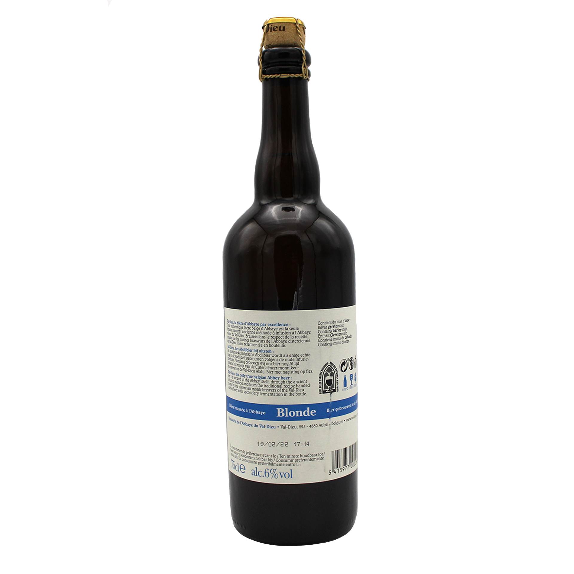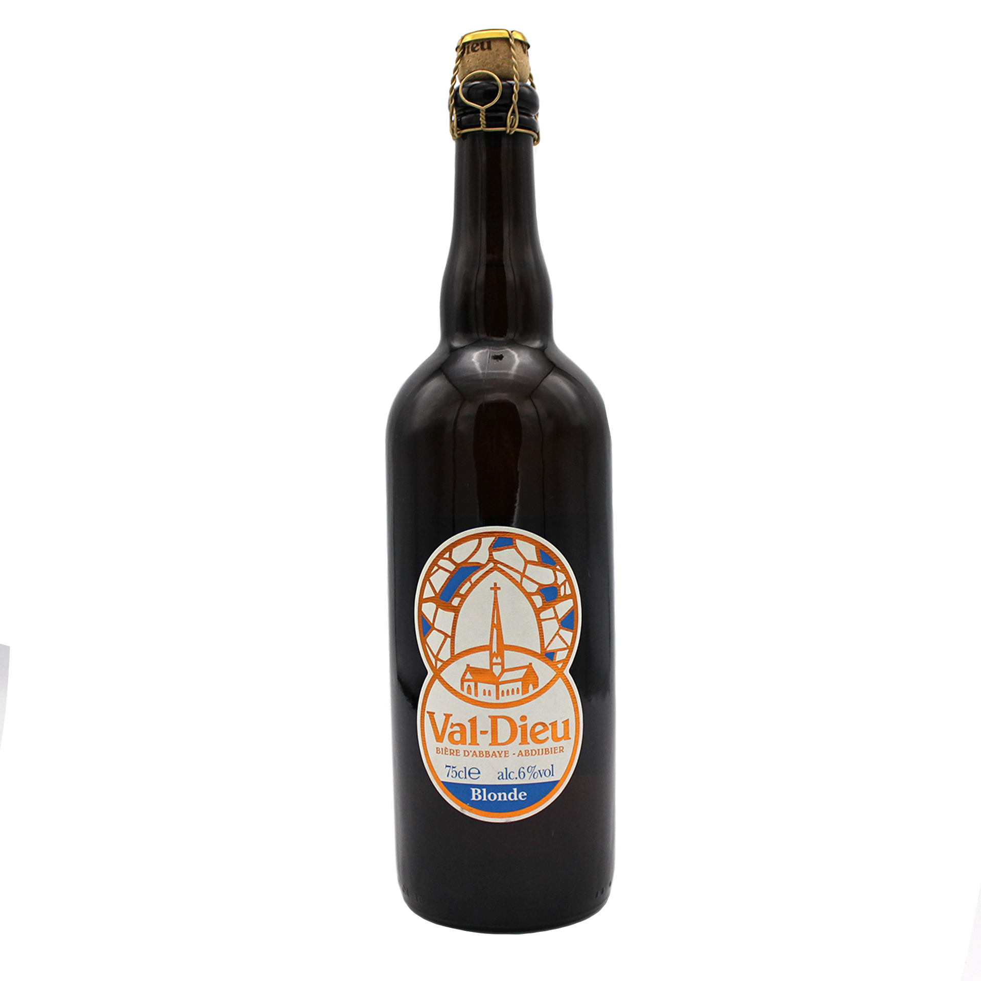 The Val-Dieu Blond is a fresh and light beer, moderately alcoholized, and a strong friendly character. It is perfect for aperitif or as digestive. It can also accompany a good meal. It does not dry the mouth and develops progressively a pleasant and bitter character. Chilled, it will be more pleasant to drink. It will keep a light white foam coat throughout the tasting.