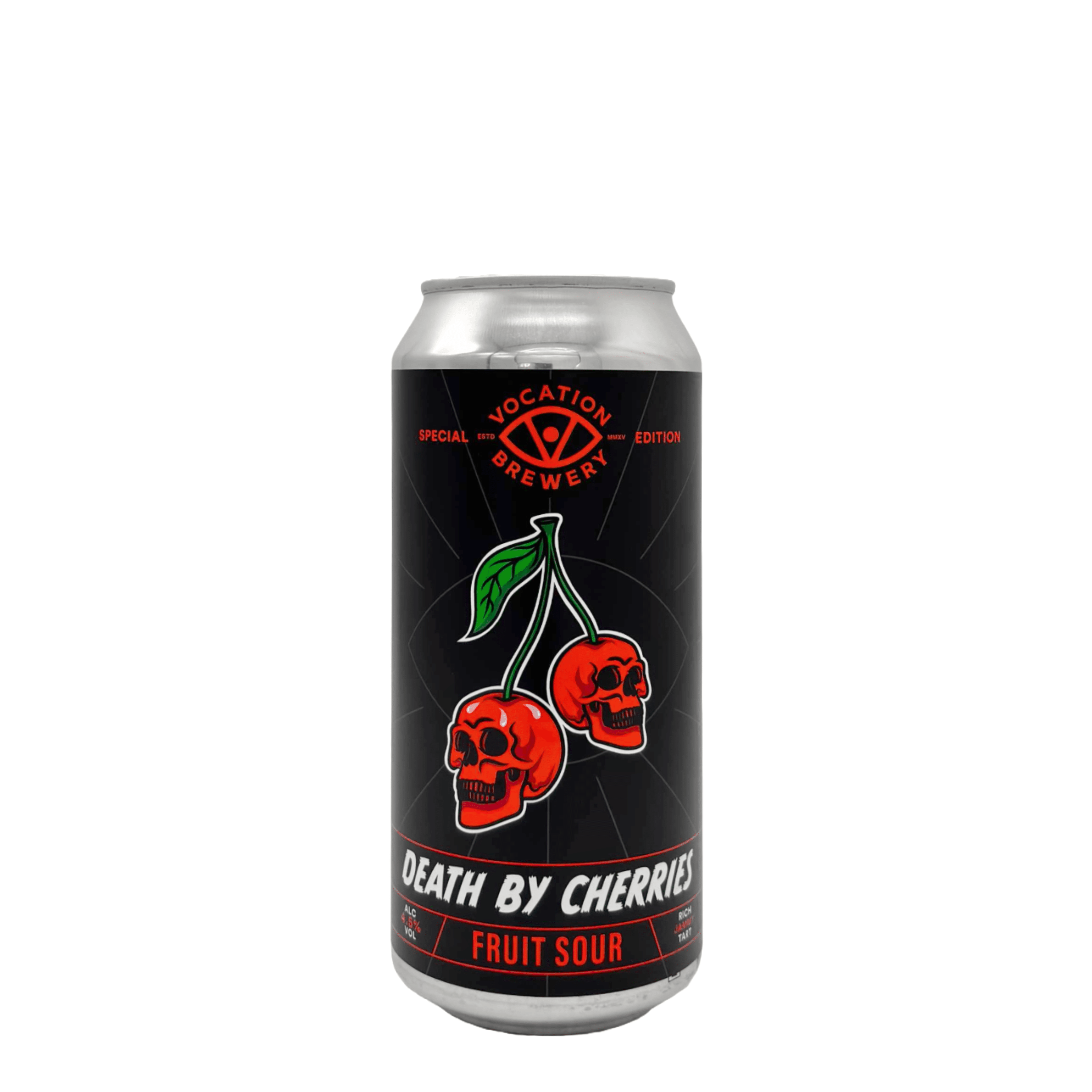 Death By Cherries by Vocation Brewery is a mouth wateringly jammy, kettle soured fruit beer, full to the brim with black cherries for an intense, rich sweet and sour brew. As vibrant in flavour as it is in colour and refreshing to the very end.
